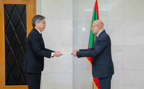 تسلم رئيس الجمهورية محمد ولد الشيخ الغزواني اليوم بالقصر الرئاسي في نواكشوط أوراق اعتماد سعادة أوتشيدا هيرويوكي .